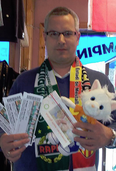 Der Obmann des Vereines "DER GLÜCKSBOTE" Erwin Lepuschitz stellte sich ebenfalls wieder mit Spenden ein, dieses Mal mit Geschenkgutscheinen ein. Auch an Rapid Fans wurde gedacht, für die brachte er Eintrittkarten samt Fan-Schals.
