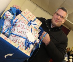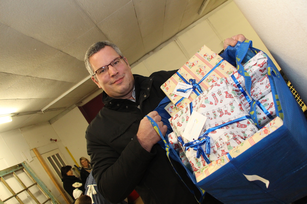 Erwin Lepuschitz, der Präsident des Vereins "Der Glücksbote" stellte sich mit Bergen von Geschenken für unsere Triestingtaler ein.